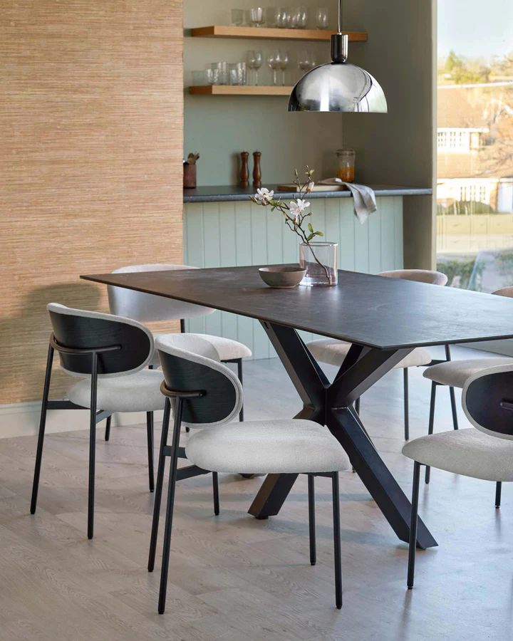Với thiết kế hiện đại, thanh lịch, ghế ăn Cree phủ nhung màu kem là điểm nhấn tinh tế cho bất kỳ không gian ăn uống nào. Được bọc bằng vải nhung màu kem sang trọng, chiếc ghế mang đến sự thoải mái vượt trội với lớp đệm dày dặn. Chân ghế kim loại đen bóng bẩy bổ sung cho lớp bọc mềm mại, tạo nên sự tương phản đầy phong cách. Được lắp ráp hoàn chỉnh và trang bị miếng bảo vệ sàn có thể điều chỉnh, ghế ăn Cree kết hợp hoàn hảo giữa tính thực dụng và phong cách. Được bán theo cặp, những chiếc ghế đa năng này hoàn hảo cho cả những bữa tối thân mật và những buổi tụ họp lớn. Kết hợp Cree với bàn ăn hiện đại và đèn thả đơn giản để tạo nên vẻ ngoài sang trọng, hiện đại, hoặc kết hợp chúng vào một không gian pha trộn hơn với sự kết hợp giữa phong cách nội thất và họa tiết, tạo nên một khu vực ăn uống độc đáo và hấp dẫn.