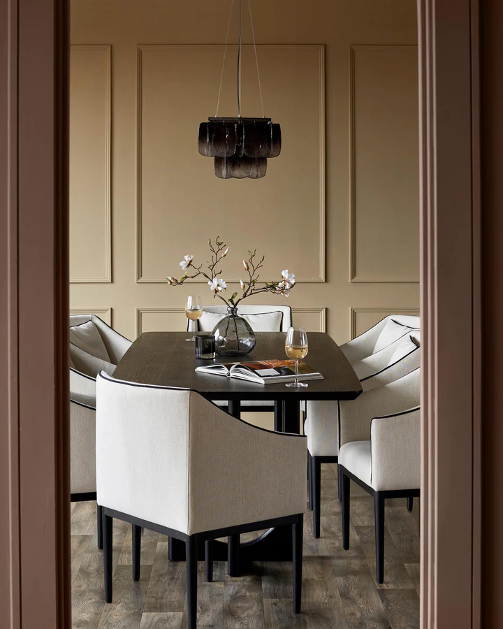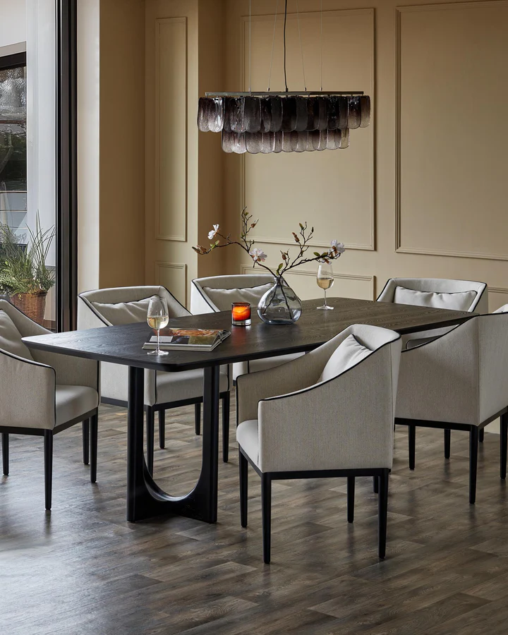 Ghế ăn bọc vải hai tông màu ngà voi Julep mang đến phong cách và sự thoải mái đồng đều. Mặt ghế rộng rãi, được trang bị đệm rời bằng sợi tổng hợp, cùng tay vịn thon gọn nhẹ nhàng cho phép bạn thư giãn và nghỉ ngơi lâu hơn. Được bọc trong vải hai tông màu ngà voi thanh lịch, ghế có viền viền màu đen tương phản, mang đến nét tinh tế. Chân ghế gỗ đen bóng bẩy hoàn thiện thiết kế hiện đại. Thiết kế Danetti độc quyền này kết hợp hoàn hảo với nhiều loại bàn ăn và ghế dài, cho phép bạn tạo ra một không gian ăn uống gắn kết và hấp dẫn. Hãy cân nhắc kết hợp ghế với ghế quầy bar Julep để mang vẻ đẹp tinh tế này đến không gian bếp hoặc quầy bar của bạn.