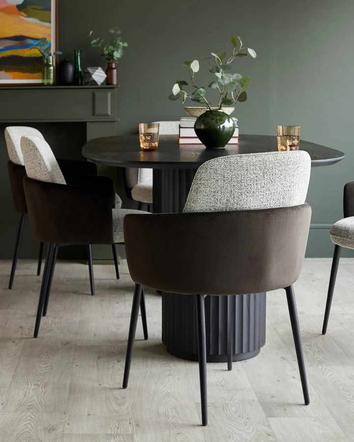 Với sự kết hợp tinh tế giữa kết cấu và chất liệu, ghế ăn Wren màu xám vải nhung và nâu mocha mang đến một góc nhìn mới mẻ cho không gian ăn uống hiện đại. Kiểu dáng bo tròn và thiết kế nhiều lớp, kết hợp với chân kim loại thon gọn, tạo nên vẻ ngoài độc đáo và tinh tế. Được bọc trong vải dệt màu xám muối tiêu ấm áp với nhung tái chế màu nâu mocha tương phản, những chiếc ghế này vừa mang đến sự thoải mái vừa thu hút thị giác. Lớp đệm mút và sợi bông bên trong đảm bảo một chỗ ngồi ấm cúng cho những bữa ăn kéo dài. Hoàn hảo cho phòng ăn hiện đại, ghế Wren kết hợp hoàn hảo với nhiều loại bàn ăn hoặc có thể đặt ở đầu ghế ăn để tạo điểm nhấn tinh tế. Sản phẩm được bán theo cặp.
