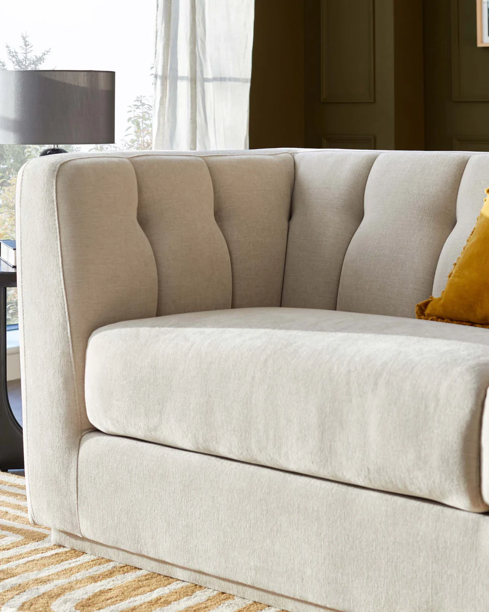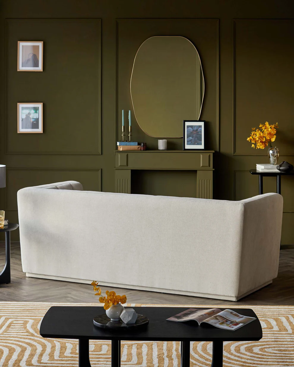 Được thiết kế nội thất tại Valentina, ghế sofa 3 chỗ ngồi mang vẻ đẹp thanh lịch vượt thời gian và vẻ ngoài đồng nhất, bóng bẩy. Những đường nét gọn gàng được bổ sung bởi các chi tiết tinh tế, bao gồm viền khía và đường chỉ may tinh tế. Lớp bọc nhung tự nhiên mang đến nét sang trọng giản dị, trong khi chân ghế ẩn và bệ ghế bọc nệm tạo nên hình bóng liền mạch, hiện đại. Sự kết hợp giữa mút cao cấp, sợi sang trọng và vải lưới bền bỉ mang đến sự thoải mái và nâng đỡ lâu dài, được gia cố bởi lò xo zig-zag chắc chắn và lò xo túi. Kết hợp Valentina với thảm trải sàn họa tiết nổi bật và đệm tựa tương phản để tạo điểm nhấn ấm cúng trong phòng khách. Hoàn thiện diện mạo với bàn cà phê hiện đại và tủ đựng đồ thanh lịch. Hoàn hảo cho nội thất hiện đại hoặc tối giản, chiếc ghế sofa này sẽ nâng tầm bất kỳ không gian sống nào.
