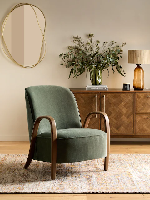 Sự kết hợp hoàn hảo giữa phong cách và sự thoải mái với chiếc ghế Hensley lấy cảm hứng từ phong cách Bắc Âu (Scandi). Thiết kế tinh tế với đường viền chỉ nổi và tay vịn gỗ chắc chắn, phần tay vịn uốn cong độc đáo mang đến vẻ ngoài sang trọng. Hensley là lựa chọn lý tưởng để tạo một góc đọc sách ấm cúng hoặc làm điểm nhấn nổi bật trong không gian sống.