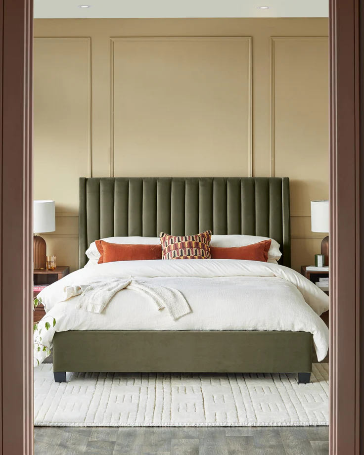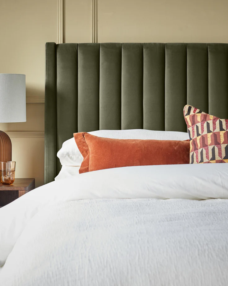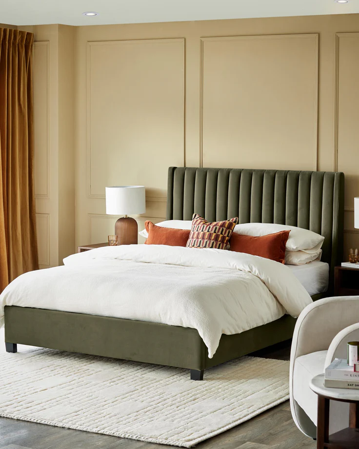 Giường đôn cỡ lớn bọc nhung xanh ô liu Amalfi